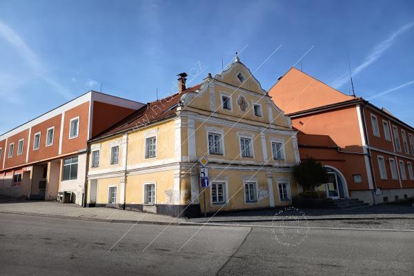 Na jihozápadním nároží náměstí při ústí do Krumlovské ulice. Pochází pravděpodobně ze 17. stol., fasáda je ze začátku 19. stol. Patrový objekt obdélného půdorysu s barokizující fasádou, volutovým štítem a sedlovou střechou. Průčelí členěno pilastry, okna mají štukové šambrány s nadokenními římsami.