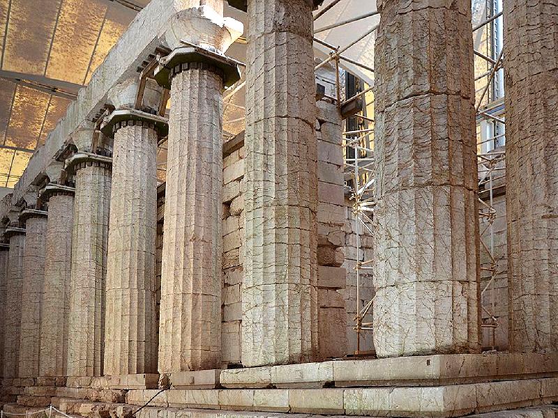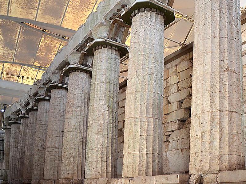 Apollonův chrám v Bassai na řeckém poloostrově Peloponés.