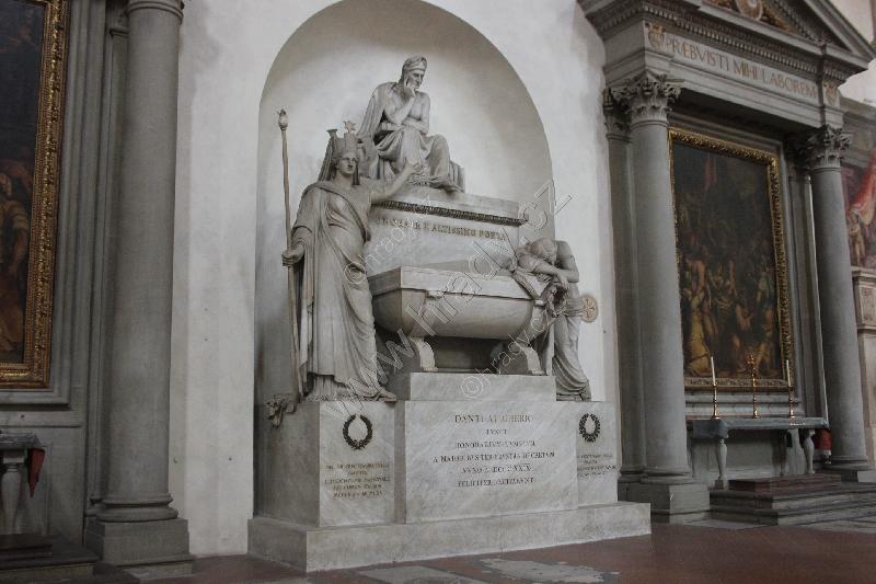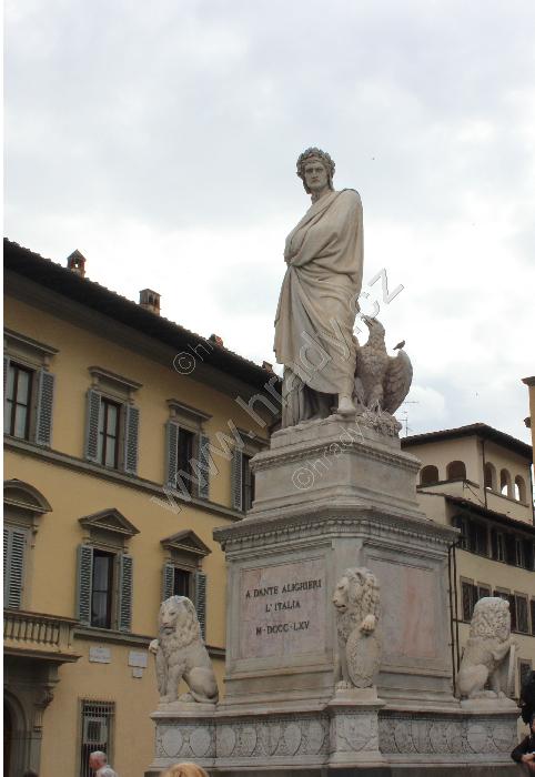 Socha Dante Alighieriho na rohu před bazilikou.
