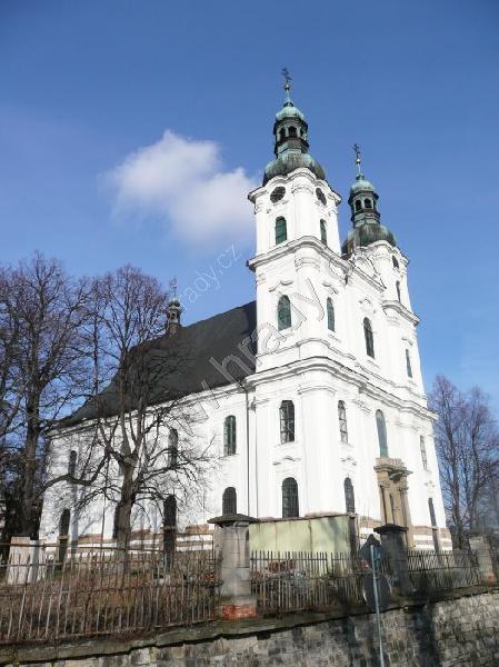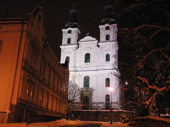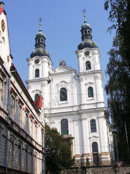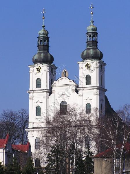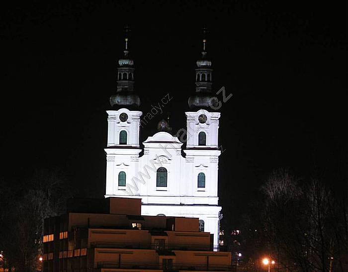 celkový pohled na dvouvěžové průčelí basiliky z Lískovecké ulice