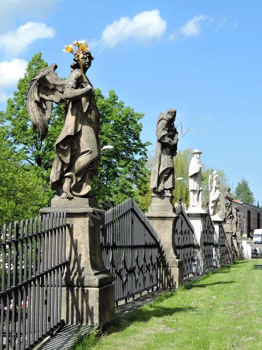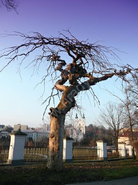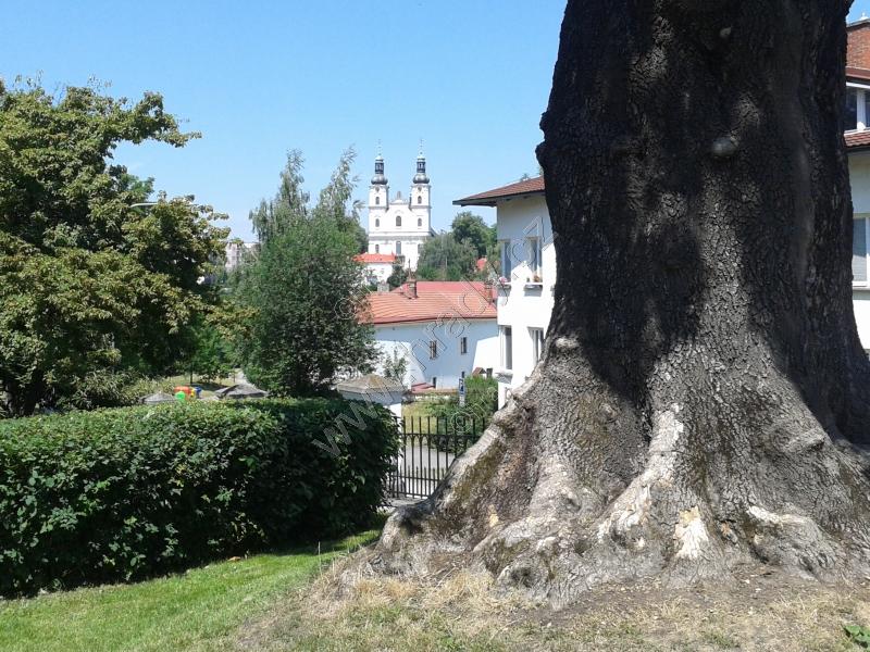 dvouvěžové průčelí mariánské basiliky od podzámeckého parku