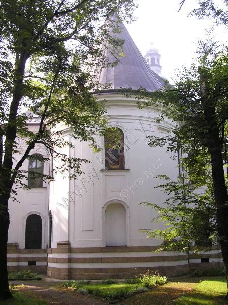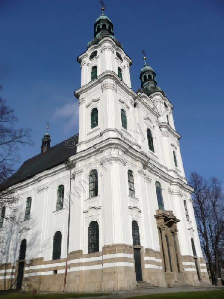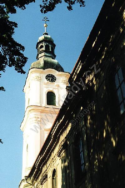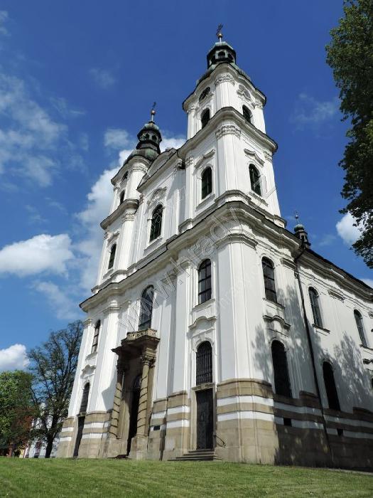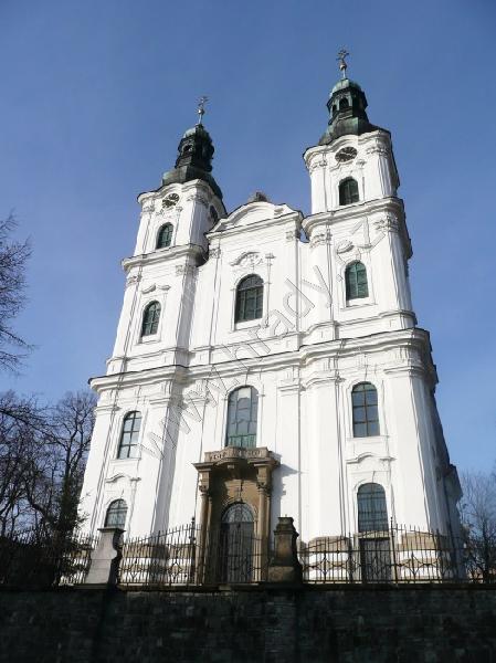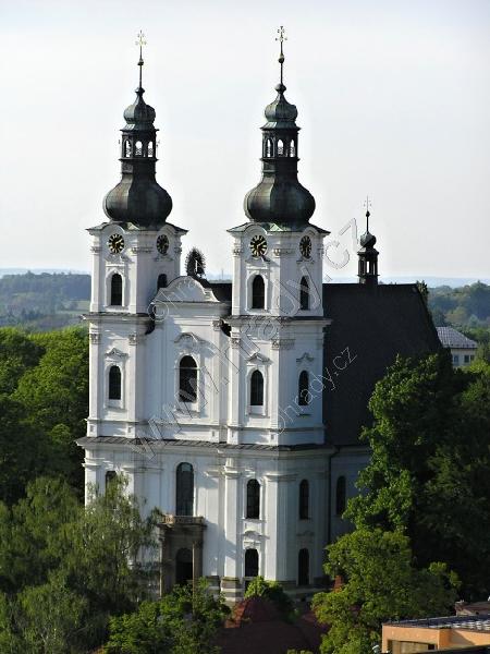 dvoj věžové barokní průčelí basiliky Panny Marie z Podzámeckého parku