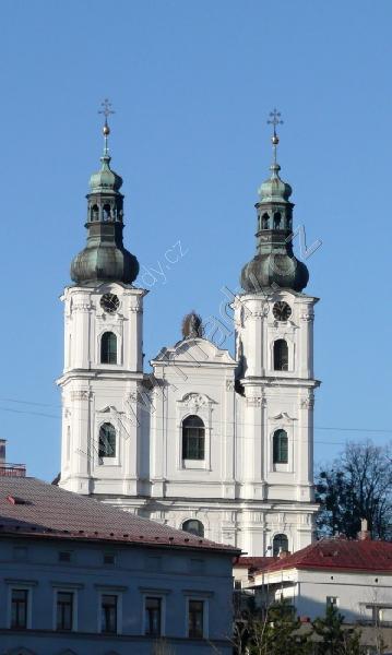 barokní dvouvěžové průčelí basiliky minor Panny Marie