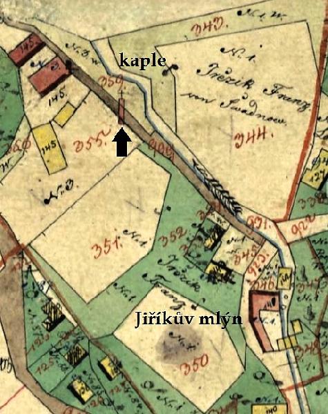 výřez části mapy Indikační skici ze 30. let 19. století s vyznačenou kaplí
