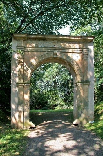 Portál ze zbořeného domu Haugviců z Loštic (č.p. 55) z pol. 16. stol osazený při vstupu na bývalé tvrziště, které bylo později využito jako jízdárna.