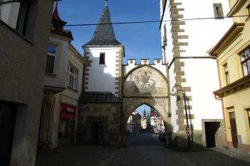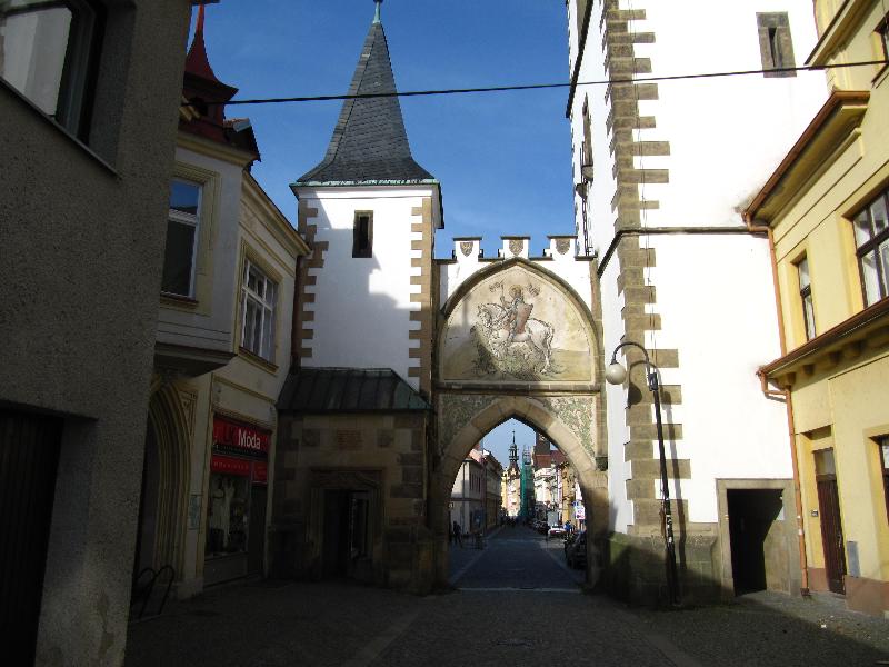 Pohled na Litomyšlskou bránu Tůmovou ulicí od náměstí Přemysla Otakara II.