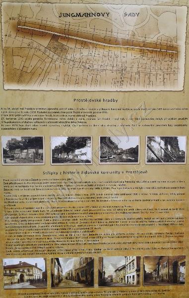Prostějov - Hradby ve Školní ulici - historické foto z infotabule v místě