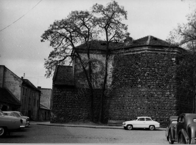 Druhá bašta-skrytý pohled přes vrata od jihozápadu z Palackého ulice.