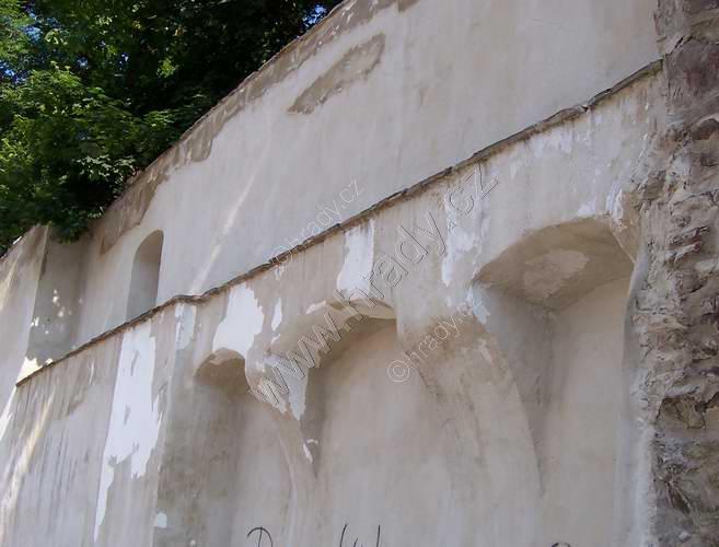 Pohled na druhou baštu z přístupové uličky od Žižkova náměstí.