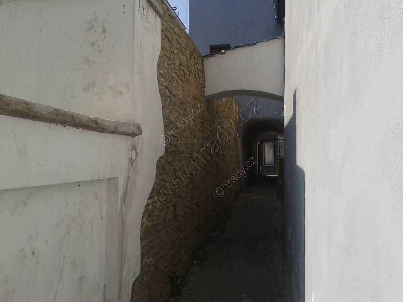 Průchod za hradbou z ulice 1.máje do Švédské ulice