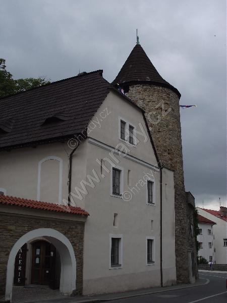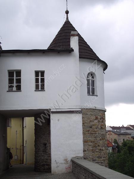 Budova nynější galerie, bývalá šatlava, při věži Zázvorce