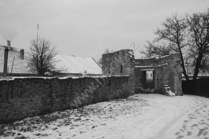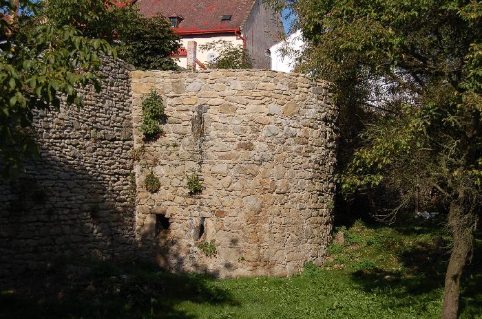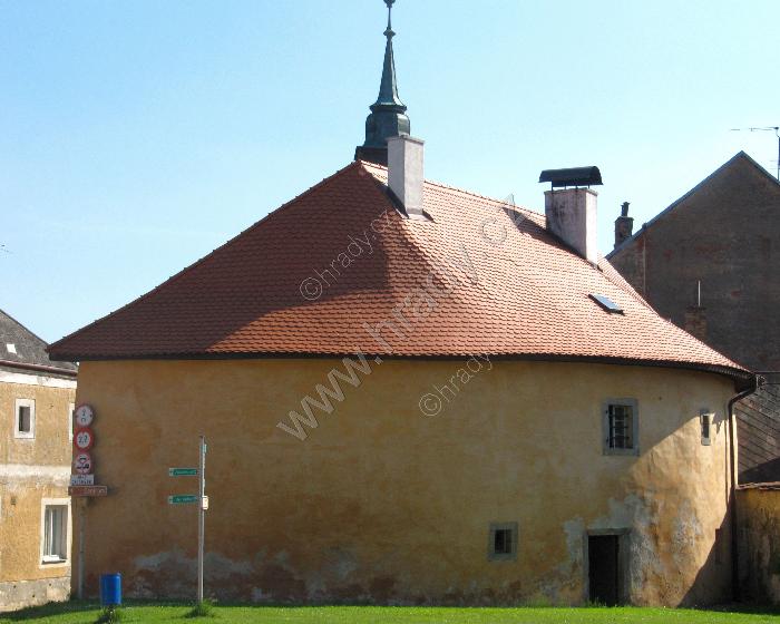 Před branou stojí části bývalého barbakánu zřejmě z 15. stol.