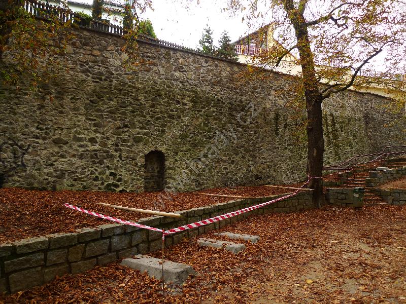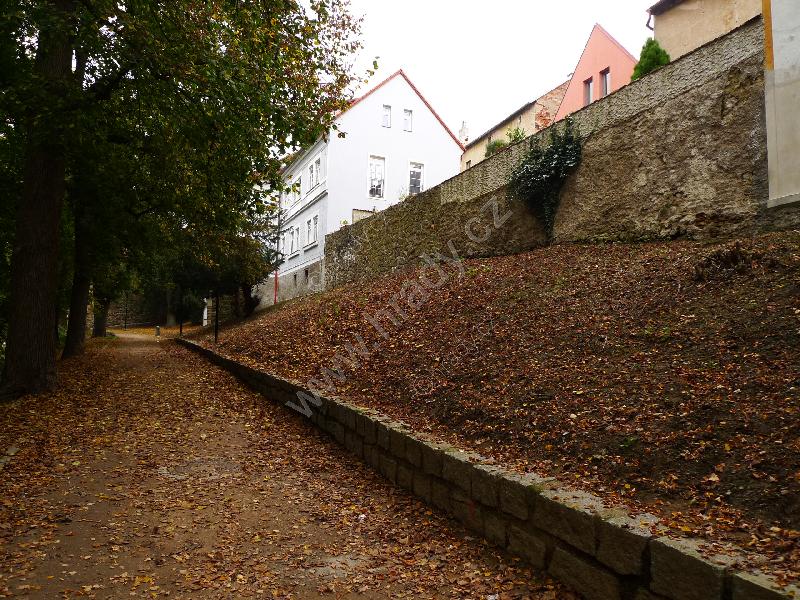 Hradby severně od Střelnice, v pozadí barokní bastion nad Jordánem