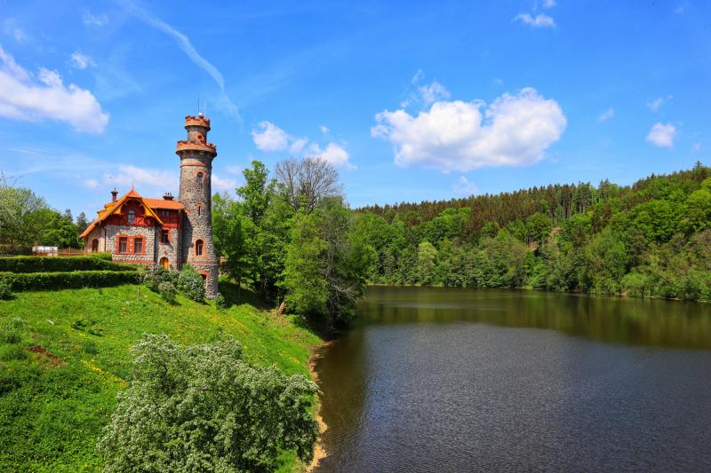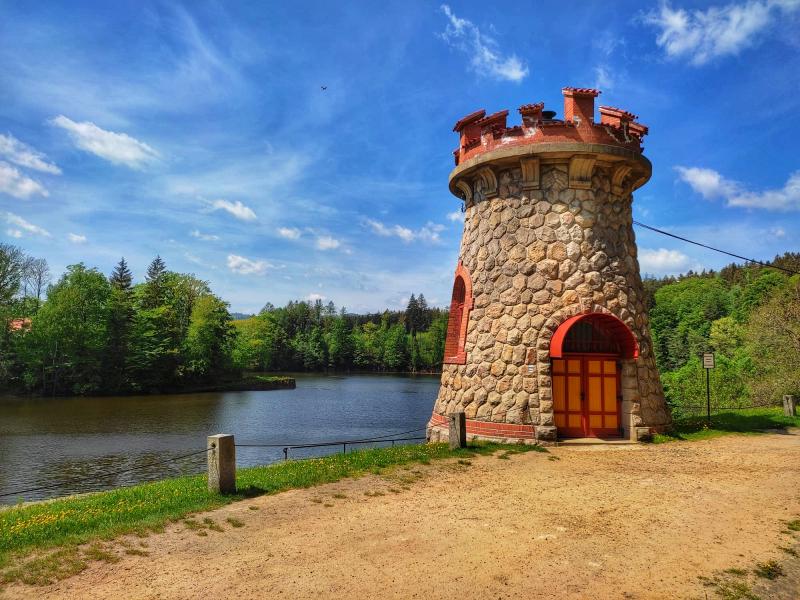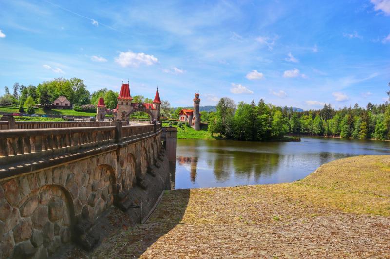 Projektanti ji navrhli v romantickém duchu, o čemž svědčí zejména koruna hráze tvořena dvěma bránami s věžemi, které téměř připomínají pohádkové kulisy. Malý kamenný hrádek s věží s cimbuřím býval domkem hrázného. Z vyhlídkové věže je rozhled na celou hráz a kopec Zvičina s přilehlým okolím.
