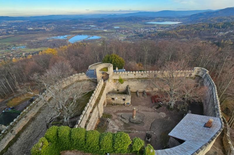 Pár kilometrů za našimi hranicemi v Polsku je k vidění zachovalá zřícenina hradu Chojnik. Stojí na stejnojmenném kopci v nadmořské výšce 627 metrů. Z hradní věže se návštěvníkům naskytne krásný pohled na Krkonoše a do údolí Jelení Hory. Vydáte-li se na hrad z obce Sobieszów, projděte se kolem zdejších kostelů.
