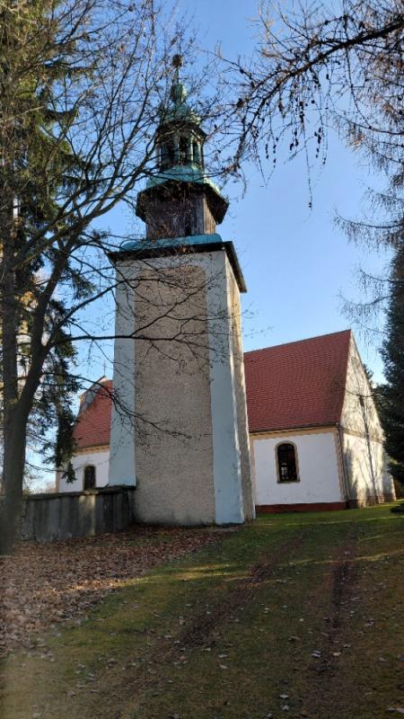 Kostel pochází z doby kolem roku 1305, původně byl zasvěcen sv. Barboře. Roku 1520 jej převzali protestanté, kteří ho přestavili v renesančním duchu. Roku 1657 se kostel vrátil do rukou katolíků, ti ho zasvětili sv. Martinu. V letech 1778-82 byl kostel z iniciativy hraběte Johanna Nepomuka Schaffgotsche přestavěn v barokním slohu. Z této doby se mimo jiné dochovala dřevěná křtitelnice a kazatelna. Vitráže pochází z roku 1921.