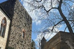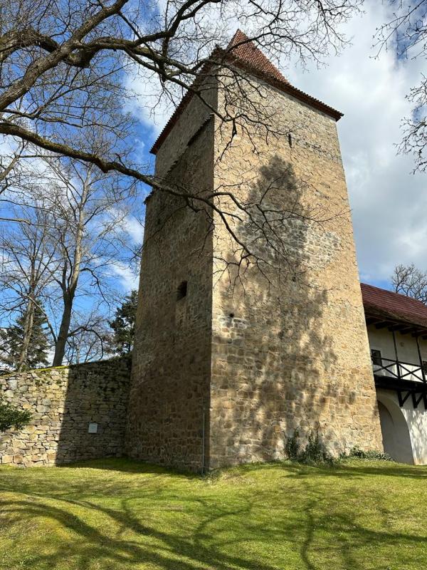Po tom, co jsme si prohlédli zbraně a dozvěděli se od „lancknechta“ mnoho zajímavostí, rozhodli jsme se dát si malou svačinu. Usedli jsme na lavičky u hradeb a vychutnali si obložené housky, které jsme si přinesli s sebou. Kluci ještě diskutovali o tom, jak by asi rytíři jedli během svých výprav.