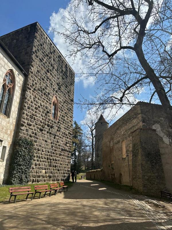 Pokud projdete další branou a nevstoupíte na nádvoří s arkádami, dostanete se na travnaté prostranství, které je obklopeno historickými hradbami a hospodářskými budovami. Toto místo dnes slouží jako dějiště šermířských a divadelních vystoupení.