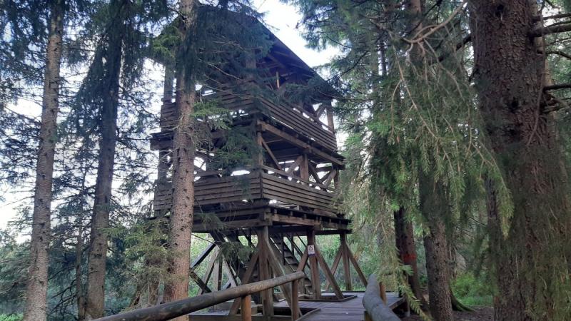 Na okraji rašeliniště se nachází dřevěná rozhledna, ze které je možné zhlédnout celou rozlohu rašeliniště i s dominantním vrcholem Antýglu v pozadí. Za dobrého počasí zde můžete spatřit také Březovou horu, vrch Lišák či Břemeno. Uvnitř rozhledny se nachází informační tabule, které ukazují statistiky týkající se počasí na slati.