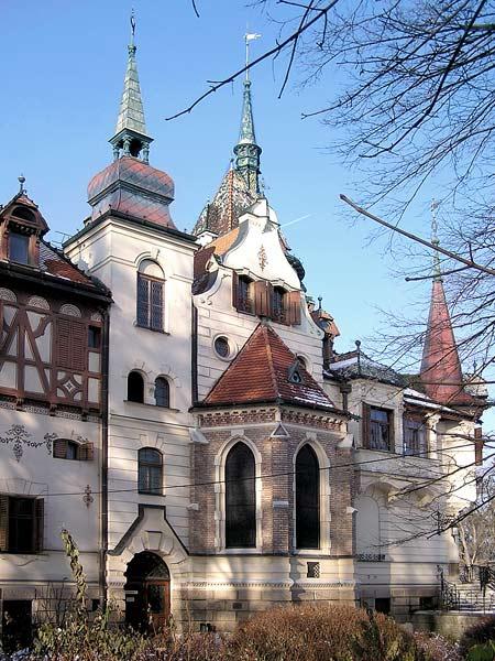 A když už zmiňujeme tuto zoo, tak její neodmyslitelnou částí je i zámek Lešná. Výstavba jeho areálu začala v roce 1804, zámek pak byl dokončen roku 1807. Následně byl ale zbourán v roce 1885, kdy na jeho místě byl vystavěn zámek nový. Ten se své realizace dočkal roku 1893. Nynější zámek tak kombinuje neorenesanci s neogotikou a švýcarským stylem. Interiéry byly přepychové a nabízely komfort své doby, včetně elektřiny a ústředního topení, vodovodu s teplou a studenou vodou, domácím telefonem, a dokonce i splachovacím záchodem. Suterén sloužil pro hospodářské a provozní místnosti, přízemí zahrnovalo obytné místnosti a reprezentační prostory. První patro bylo určené majiteli a jeho rodině, druhé patro nabízelo hostinské pokoje. Na přelomu 19. a 20. století byl zámek s areálem, parkem, oborou a přilehlými budovami dotvořen a sjednocen do architektonického a přírodního celku.