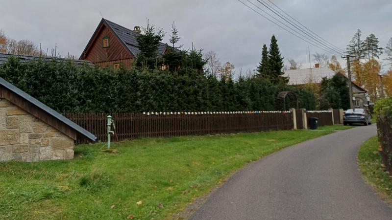 Za kostelem je parta dětí a pod přístřeškem dlabe své dýně pod dozorem rodičů. Nejsou to místní, jsou to také rekreanti, tak jako většina osazenstva obce. Děcka soutěží, překřikují se, panuje výborná nálada. Svěží vítr nám vhání slzy do očí, procházíme okolo místního hotelu, většina oken už svítí, hosté odpočívají a ladí formu na výlet dalšího dne.Až na konci obce pod lesem stojí chalupa Karla Gotta, před domem stojí zaparkované auto, ale rodině zřejmě nepatří. Okna jsou potemnělá, nikdo zde není. O pozemek se ale kdosi stará, tráva je vzorně posekaná.