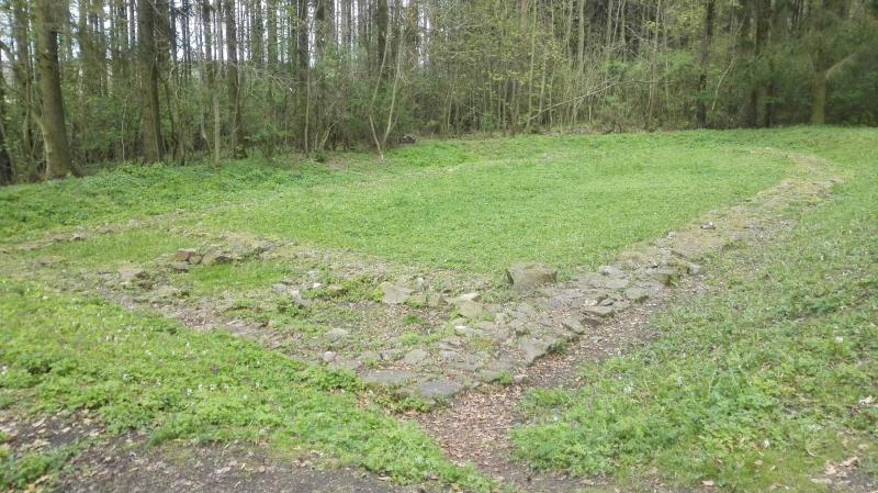 Od rotundy cesta dále stoupá. Na vrcholu stoupání najdeme další z informačních panelů naučné stezky. Dochované valy dosvědčují, že jsme v místě někdejšího hradiště. Na hradišti stával románský kostel sv. Vavřince z 11. století, který byl v 16. století přestavěn a udržován ještě v 18. století. Roku 1818 však byla jeho střecha i s krovy stržena ničivou vichřicí a zdivo stavby bylo rozebráno obyvatelstvem. Při průzkumu v letech 1920-1921 byly základy odhaleny a konzervovány. Nyní jsou obrysy stavby v terénu vyznačeny a zůstávají po levé straně stezky. O něco dále uvidíme ještě základy další svatyně odkryté rovněž v roce 1921. Jde o kostel sv. Kříže z 12. století (49.7046992N, 13.4793028E), svými rozměry větší než kostel předchozí, který stál již za hradištěm a byl patrně součástí dvorce purkrabího. Tato stavba zanikla mnohem dříve, poněvadž v 17. století již není zmiňována. To jsme však již minuli vrchol Hůrky. Za zbytky základů kostela sv. Kříže se trasy stezek dělí. Naše Staroplzenecká vede pravou větví, která se asi po 300 m na okraji lesa lomí vpravo a klesá k turistickému rozcestí V Dubcích. Tam se opět stočí vpravo a vede pod příkrou Černou strání, která je od roku 1990 chráněna jako přírodní památka, neboť jde o významné naleziště zkamenělin prvohorní fauny. V Podhradní ulici na okraji Starého Plzence se trasa zlomí ostře vlevo téměř do protisměru a sejde k břehu Úslavy. Její břeh značka sleduje do historické vsi Sedlec, která je nyní městskou částí Starého Plzence.Tato ves byla od 16. století proslulá zpracováním železné rudy, které tu zavedli Kokořovci a roku 1578 vybudovali první hamr. Nejprve však při průchodu vsí mineme kapličku z roku 1904, která je součástí požární zbrojnice a za ní se skrývá i hasičské muzeum. Potom mineme turistický rozcestník Sedlec a brzy nato uvidíme po pravé straně průmyslový areál v místě bývalých železáren.
