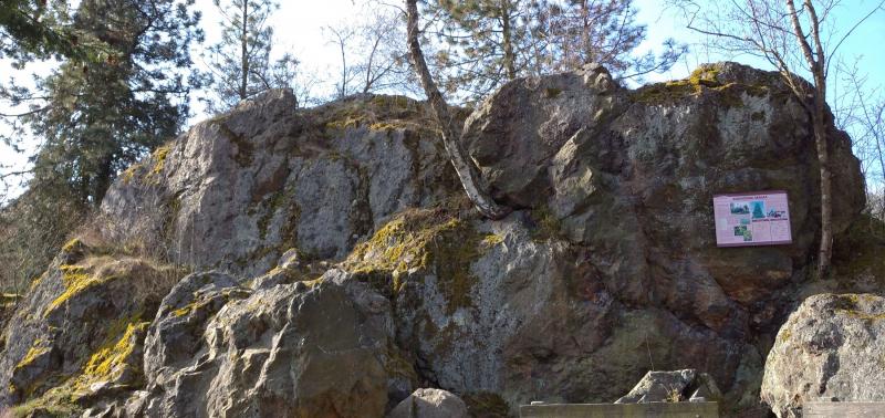 Když přejdeme most, začne trasa stezky zvolna opět stoupat okrajem Starého Plzence. Ve vilové čtvrti nás zaujme další zastavení u tzv. Radoušovy skalky (49.6896050N, 13.4783783E). Je to nevelký zbytek buližníkového suku, jehož větší část byla v minulosti odtěžena lomem. Nyní je kolem hezky upravený malý parčík. Pojmenování skalky je novodobé a dali jí ho místní obyvatelé. S tím jménem se však setkáme častěji a je proto třeba si říct, kde se vlastně vzalo.