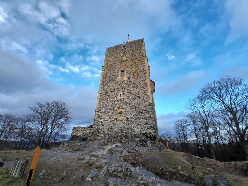 Právě na hrad Radyni nás dále povede značka naučné stezky. Stále stoupá okrajem města a u turistického rozcestí Pod Výrovnou, kde křížíme silnici, se k nám přidá ještě značka žlutá. Zanedlouho potom opustíme zástavbu a vytrvale stoupáme lesem. Na rozcestí zvaném Březová mýť přijde ještě zleva červená a půjde také s námi, ale jen na vrchol hřebenu. Tam se u rozcestníku Radyně-zříc. odpojí a my dojdeme ke skále, na níž zřícenina hradu stojí.