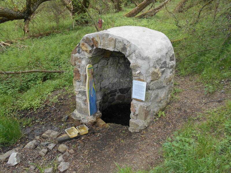 Od hradu trasa naučné stezky i žlutá značka společně klesají opačnou stranou kopce, ale jen chvíli. Brzy se na rozcestí Pod Radyní žlutá odpojí a značení naší naučné stezky vede samostatně vpravo k další zajímavosti. Zanedlouho přicházíme k přírodní památce zvané Andrejšky (49.6881983N, 13.4585172E). Je to asi 300 m dlouhý pás buližníkových skal chráněný od roku 1975, který se táhne lesem po svahu Radyně na rozloze 2 hektarů. Od rozcestníku Andrejšky-skalní masiv nás stezka vede podél zarostlého skalnatého hřebínku a brzy potom vyjdeme z lesa. Klesáme po naučné stezce západním okrajem Starého Plzence, překřížíme plzeňskou silnici a pokračujeme k železniční trati, před níž najdeme při cestě studánku U Bětušky, upravenou v roce 2018. Za podchodem železnice se stezka stočí obloukem vpravo a vrátí se k trati, kterou budeme sledovat.Po levé straně uvidíme osamělou sochu sv. Blažeje. Je to jediná připomínka původního stejnojmenného kostela, který vznikl v 11.–12. století. Byl několikrát pobořen a znovu obnoven. Při kostele bydlel poustevník, který se o něj staral. V r. 1785 byl kostel uzavřen a za vlády Josefa II. prodán a zbořen.