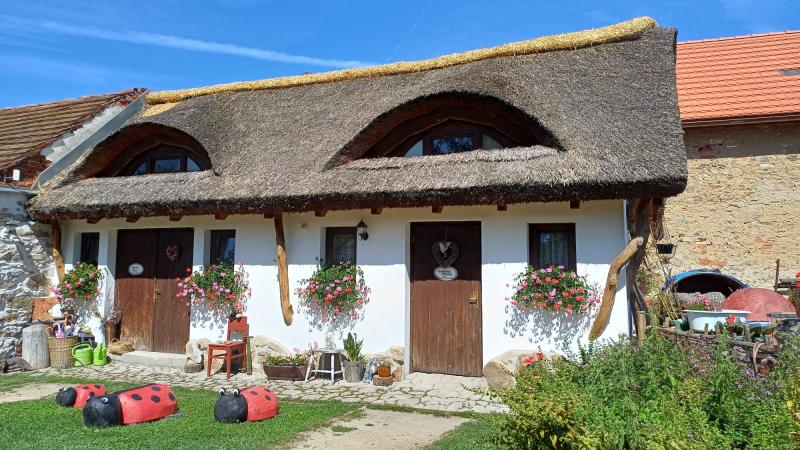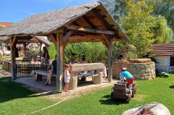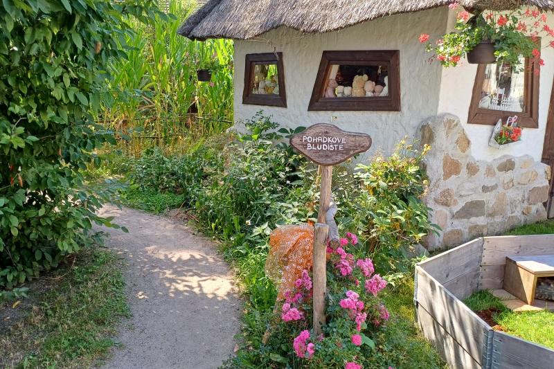 Máte hlad, žízeň nebo se vám chce na záchod? Žádný problém. Zde je vše k dispozici. Můžete si pochutnat na pizze, napít se a odskočit si. Toalety jsou obzvláště vymazlené, nacházejí se totiž v kouzelné doškové chaloupce.