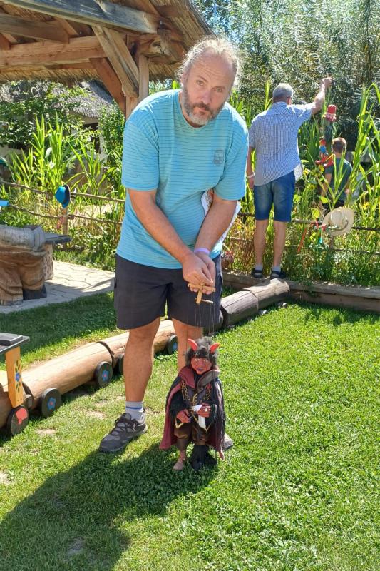 Tatínci se mezitím chopili loutek čertů a hastrmanů, loutky je moc neposlouchají, čert ovšem už umí pěkně mávat pekelnou pečetí. Jiný tatínek učí synka rybařit v kádi. Milovníci zvířátek si také přijdou na své. Uvidí suchozemskou želvu ve svém výběhu a oslíky Jasmínu a Aladina.