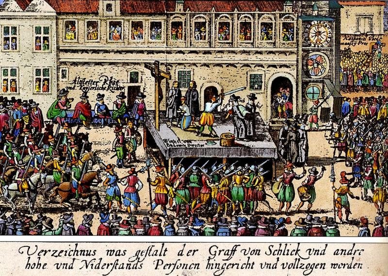 21. června roku 1621 bylo na Staroměstském náměstí postaveno dřevěné lešení. Lešení smrti. Právě ten den se zde konala poprava 27 vůdců stavovského povstání, kteří se veřejně vzbouřili proti utlačování Čechů. Poprava to byla mimořádně zlá a krutá. Na rozhodnutí tehdejšího obávaného a neoblíbeného českého krále Ferdinanda II., sťal kat Mydlář hlavy třem šlechticům, sedmi rytířům a sedmnácti měšťanům. Byl to tak vyčerpávající výkon i pro zkušeného kata, že posledním třem už neměl sílu setnout hlavy a tak byli oběšeni. Krvavé podívané přihlížely davy lidí, z nichž mnozí omdlévaly hrůzou. Mezi popravenými byl i významný slovenský lékař Jan Jessenius, který jako první provedl v českých zemích veřejnou pitvu.