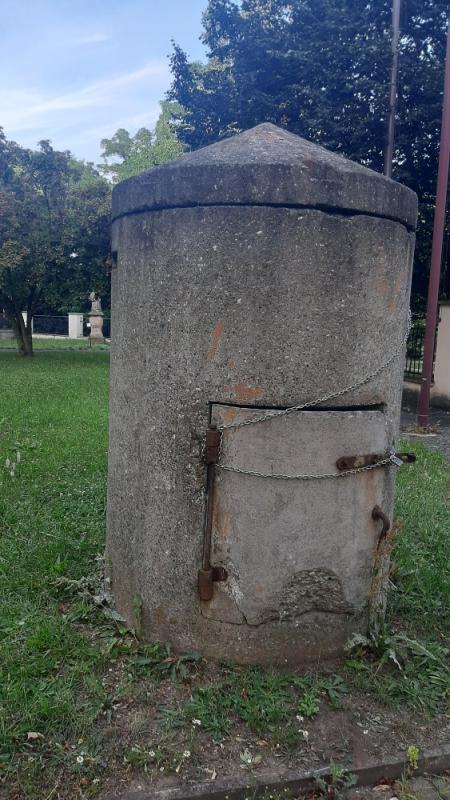 Protistřepinový kryt pro jednoho muže vyrobený z betonu pochází z 30.-40. let 20. století. Tyto betonové kryty, do nichž se vešli nanejvýš dva muži se budovaly jako ochrana proti padajícím střepinám na místech, která bylo nutné nepřetržitě střežit. Když v průběhu spojeneckých náletů na chemičku v Záluží od května 1944 zahájila palbu stanoviště protiletadlové obrany, docházelo k masivnímu spadu žhavých střepin tříštivo-trhavých granátů, což mělo smrtelný účinek. Bunkr poskytoval ochranu před střepinami, které doslova pršely z nebe, aniž by strážný musel opustit stanoviště. Tento bunkr pochází z výsypky u Braňan (dnes na hraně lomu Bílina) a muzeum jej získalo zásluhou Severočeských dolů.Svatý Jan Nepomucký