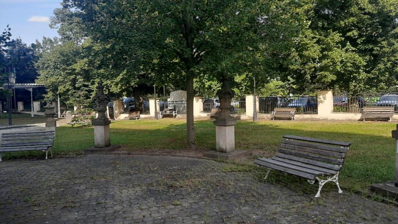 Před muzeem stojí 6 do půlkruhu uspořádaných pískovcových váz z 18. století, které jsou kulturní památkou. Původně tvořily součást výzdoby exteriéru minoritského kostela sv. Františka Serafinského v Mostě. Před jeho zbořením v rámci likvidace starého Mostu pro těžbu uhlí byly vázy sejmuty. Vázy zde byly umístěny na atice, zvedající se nad boční lodi na severozápadní straně kostela, a to mezi sedmi sochami, znázorňujícími alegorie křesťanských ctností. Nově byly vázy umístěny na nových soklech, stojících na travnaté ploše v areálu muzea. Pět váz je obdobného provedení - s použitím rokokových výrazových prostředků. Šestá váza je jednodušší, odlišná je také její výška. Autorem je sochař Karl Weitzmann.