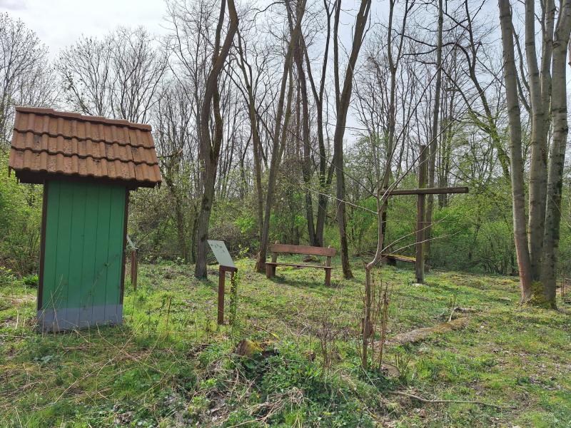 Po prohlídce je nutno se vrátit k rozcestí Pod Kateřinou, odkud výlet pokračuje po modré značce. Ta se brzy vrátí na silničku, kterou jsme dříve křížili. Přijdeme na místo s odpočívadlem označované Přístřešek Pozorovatelna, kde zleva přijde naučná stezka stejného jména.