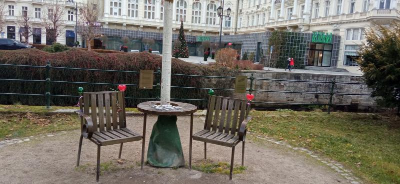 Proti Grandhotelu Pupp v sadech Karla IV, u Labitzského lávky přes říčku Teplá, se nachází lavička Václava Havla z dílny Bořka Šípka. Cena pořízení lavičky se vyšplhala na 280 tisíc Kč, které ve valné většině věnovalo město s přispěním sbírky karlovarských občanů. Jedná se spíše o dvě křesílka se stolečkem. Můžeme se zde usadit a vychutnat místo. Na tak drahé židličce pravděpodobně nikdo z nás ještě nikdy neseděl.
