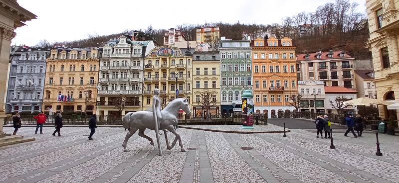 Mlýnská kolonáda, dlouhá 132 m v neorenesančním slohu, je místem společenských akcí a koncertů. Na vás zde čeká dalších pět pramenů. Na konci kolonády si povšimněte sochy koně s jezdcem. Je opravdu zajímavá. Jak se vám líbí?