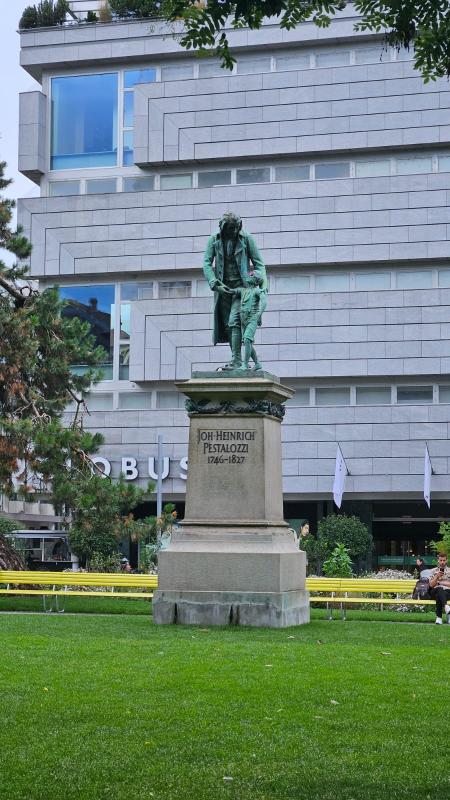 Pestalozziho památník je věnovaný Johannu Heinrichu Pestalozzimu (1746–1827), pedagogovi narozenému a vychovanému v Curychu. Slavnostní odhalení proběhlo v roce 1899. Bronzová socha je dílem Huga Siegwarta.