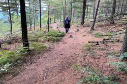 Ceková délka trasy je něco kolem 3km. I když je na začátku stoupání, tak většina cesty je z kopce. Našemu nejmenšímu členu výpravy byly čerstvě 4 roky a díky všem vjemům kolem je bez potíží uťapala.