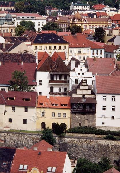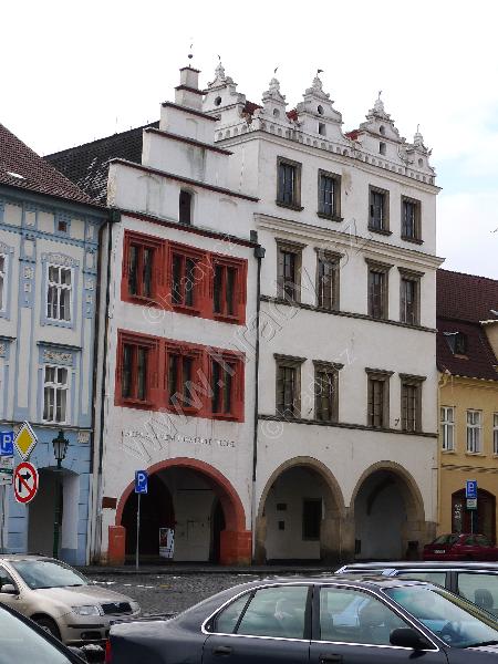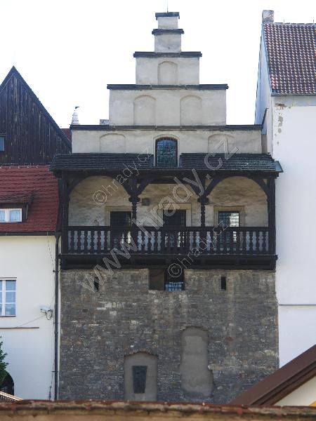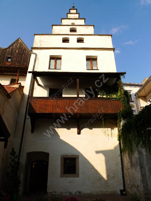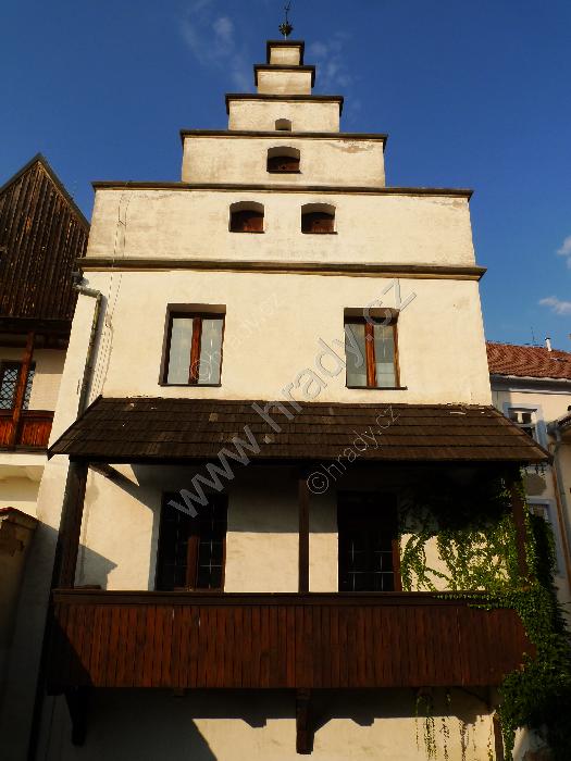 dům s pozdně gotickým štítem, krovem a renesanční pavlačí