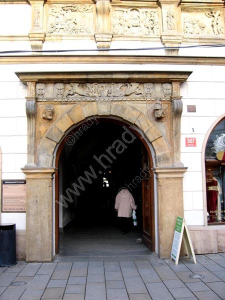 hlavní průčelí paláce obrácené do prostoru Horního náměstí v Olomouci
