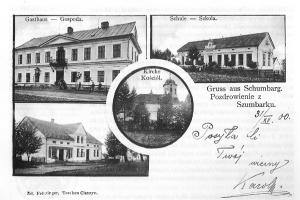 Dobová pohlednice ze Šumbarku, z roku 1900 (uprostřed kostel sv. Anny)