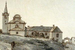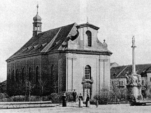 kostel před novobarokní přestavbou (1892-94), pohled od severozápadu