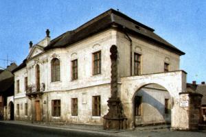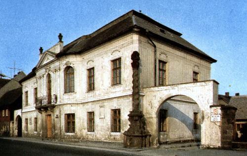 Detail z veduty Bílovce z roku 1788. Úřednický dům je zachycen na snímku vlevo nahoře vedle budovy zámku.