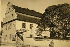 Úřednický dům na historické fotografii v pohledu od jihozápadu před přestavbou v 2. čtvrtině 20. století.