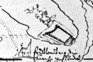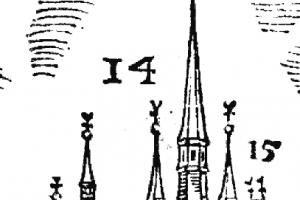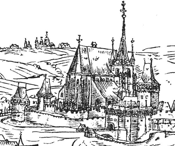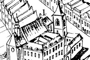 © výřez z veduty J. Willenberga (in Jan Beránek, Martin Ebel, Petr Čech: Děkanský kostel Nanebevzetí Panny Marie v Žatci, Průzkumy památek 2004-II, NPÚ - ÚOP Praha, Praha 2004)
