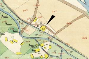 vyznačení objektu hamru č. I na mapě Stabilního katastru ze 30. let 19. století
