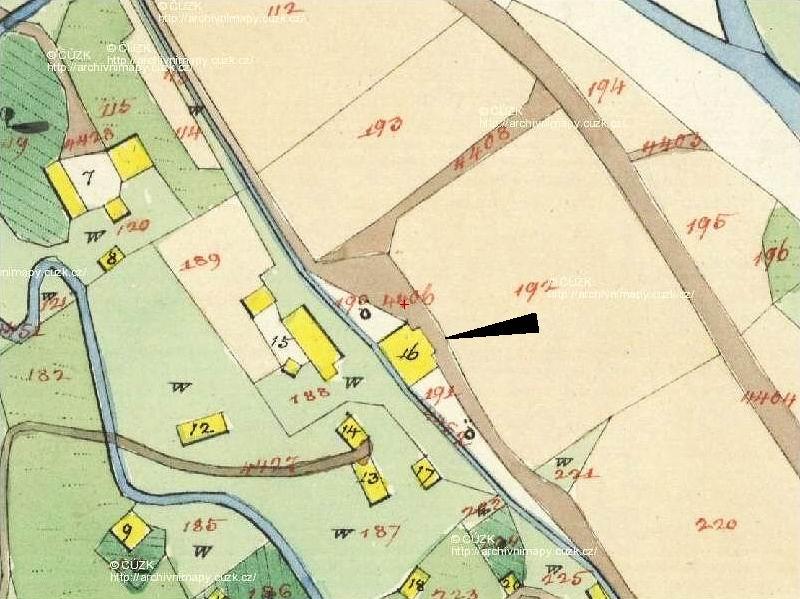 vyznačení zámečku na břehu Divoké Orlice na mapě stabilního katastru ze 30. let 19. století