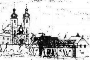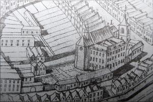 klášter po opravách po požáru r. 1758 - výřez z anonymní veduty Opavy