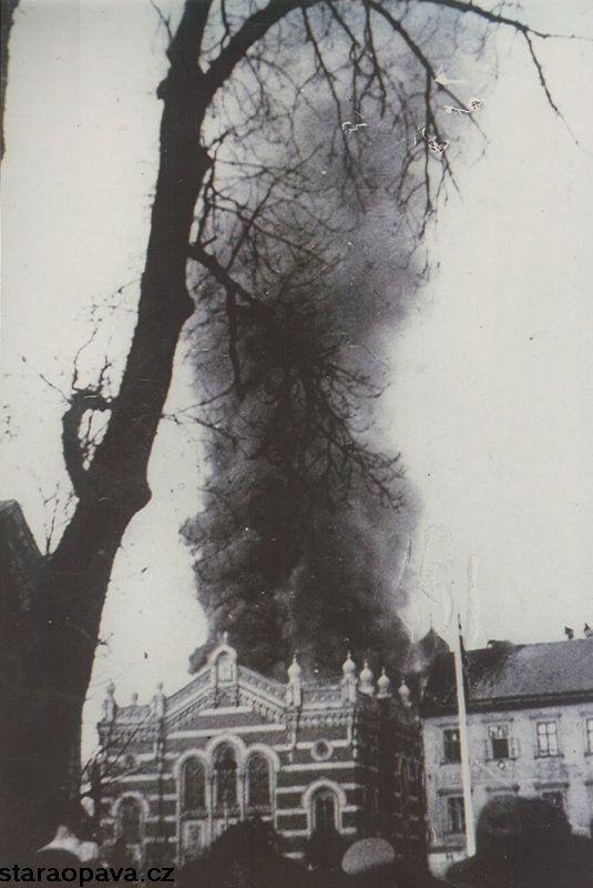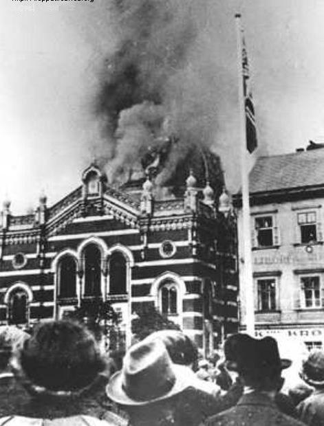 požár synagogy po Křišťálové noci 9-10.11/1938